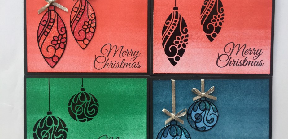 Today I sat down to create some cards using the glitter ornaments I coloured earlier this week. Using a transfer technique I was also able to use the negative or leftover part of the outline stickers, resulting in what I think is just as good as the coloured ornaments themselves.