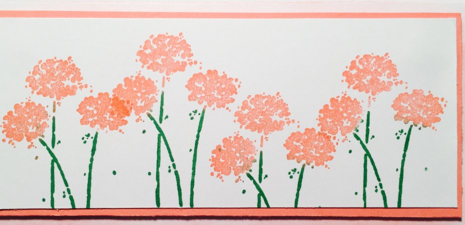 Basically I used my sponge dauber to apply the green to the stems, and then another dauber to apply the pink colour to the flowers. Then I stamped and the image came out perfectly.