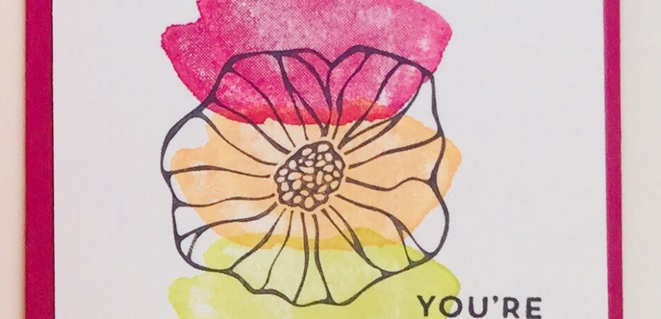 The envelopes are pre-made and can be bought from the Stampin’ Up Holiday catalogue – this saves making them! I stamped the outline flower image in each of the five colours to coordinate everything. I then made a very simple box with belly band to store them all in. Would make a cute gift don’t you think?