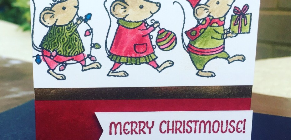 The Addicted to Stamps and More challenge this week was ‘anything goes’, so I decided to make a set of 3x3s with a stamp set that is new to me, but not new in general. It is called Merry Mice and is from Stampin’ Up!. I believe it was from a catalogue from last year – and I love it.