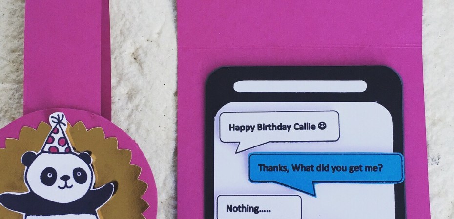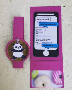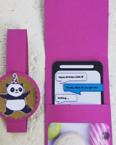 What do you do when you leave it till the day before someone’s birthday to order them their new phone? I guess some people might say “Hey, We’ve bought you a new phone, it will be here next week”. But me – I make a paper one and disguise our dis-organisation in cute packaging!
