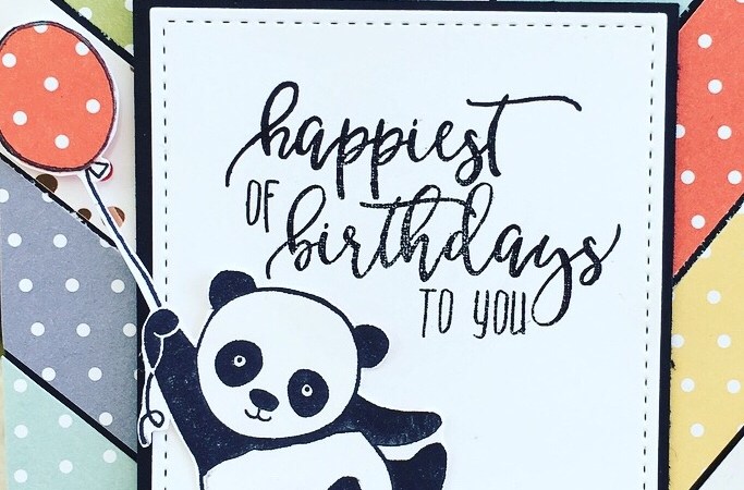 I finished the card with a sentiment from the Picture Perfect Birthday stamp set, combined with a party panda from the aptly named Party Pandas set (yet another free Sale-A-Bration item!). I stamped the balloon onto a small scrap of the paper I had used in the background and cut it out to pull everything together. This card front was then mounted onto a piece of thick whisper white to complete the card.