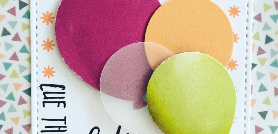 I punched some balloons out using the Balloon Bouquet punch. One is punched in peekaboo peach, one from vellum and then the Berry Burst and Lemon Lime twist balloons were punch from the balloon image DSP in the same Picture Perfect Party stack I mentioned above. I like that it gives some depth to the balloons without me lifting a finger! I finished with a few sequins that were also left over from the occasions catalogue.