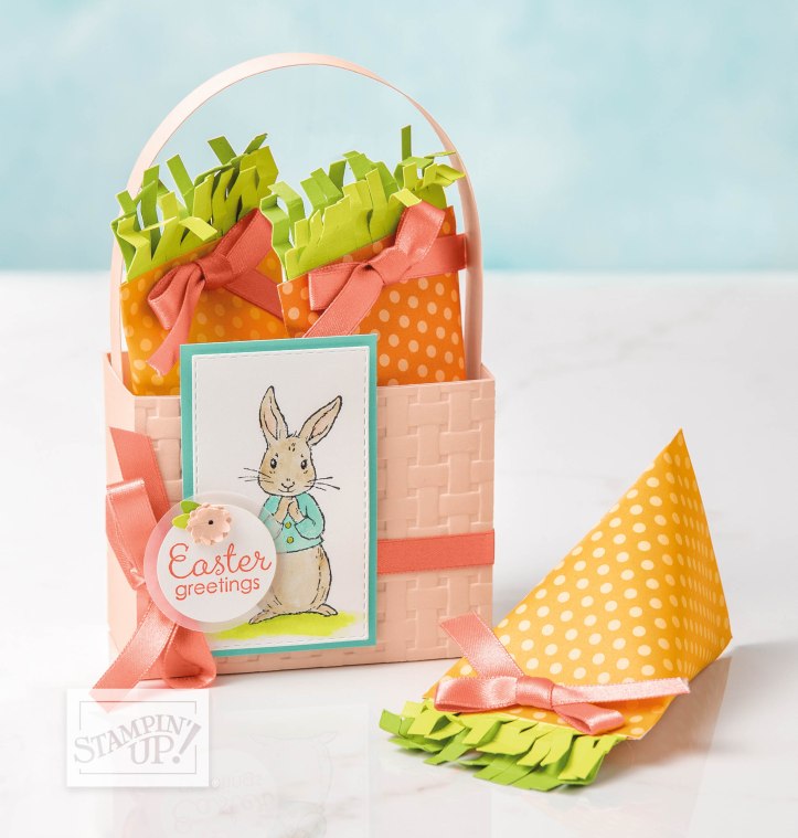 These cute little boxes are made with the Gingham Gala DSP in all 5 of the colours, I made one with the larger gingham pattern and some with the small. The sentiment comes from Fable Friends (which is carrying over to the new catalogue!!), and I have popped it up on a stitched circle and a scallop from the layering circle dies. the ribbon was a freebie from this year’s Sale-A-Bration so long gone I’m afraid…but you could use whatever you liked. Each box contains 2 small kinder eggs, you could possibly fit 3 in there (I didn’t try).