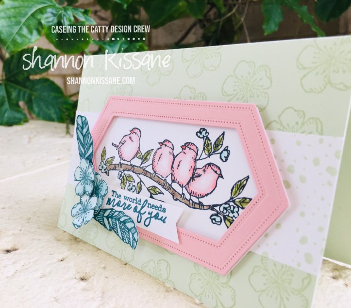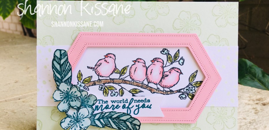 The bird image is from the brand new Free as a Bird stamp set, this set is actually bundled with the hexagon dies so if you buy them together you save 10%.