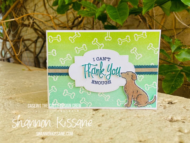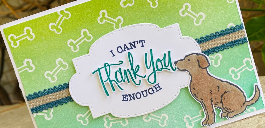 Instead of doing this, I heat embossed some dog bones in white onto my background and then sponged over the top using the colours Granny Apple Green, Pool Party and Coastal Cabana.