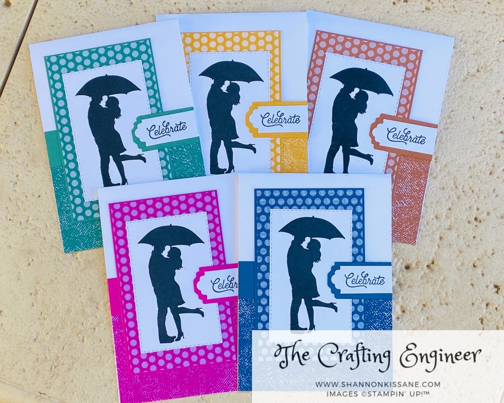 The first thing I like to do with the new colours is to make a set of cards with them, same layouts, same designs, just different colours. It was made slightly harder this year as due to some delays caused by Covid-19 we were not able to pre-order the inks, markers, blends or ink refills in the new colours. But – where we have pretty paper and card stock, we have a way! To allow the new colours to shine I teamed them with a couple of neutrals; namely black and white. I have used the Silhouette Scenes stamp set – which I am so happy to say is carrying over into the next catalogue – as it is perfect for solid images. On a side note – whilst the stamp set and coordinating dies are carrying over they will not be available at the bundled discounted price in the new catalogue. So if you love them – why not buy the bundle now and save yourself 10%.