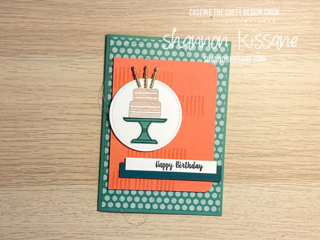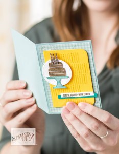 In addition to the new coloured card stock, I have also used some of the new In-Colour DSP. The cake builder punch makes light work of the gorgeous feature cake on these cards. I finished the cake by adding some of our super cute candle embellishments. The candles come in both gold and silver…and they have adhesive on them ready to go – how good is that!